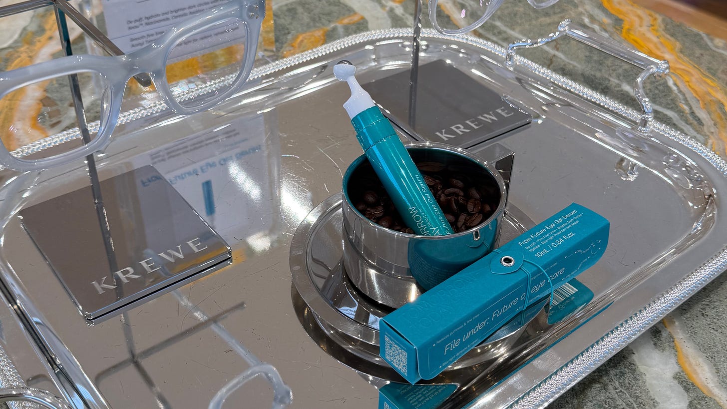 It was one of those moments where everything aligned: soft music, mimosas for guests to sip on, and curious New Yorkers stopping by to explore our From Future Eye Gel Serum - our blue-light protect + repair ritual: perfectly paired with KREWE’s eyewear.